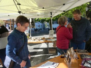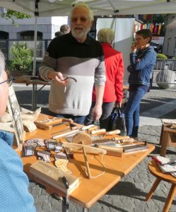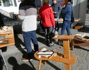 Am Samstag, 25. April 2026, lockte der Thaler Naturparkmäret wieder einmal bei strahlendem Frühlingswetter viel Publikum ins Balsthaler Dorfzentrum. Als Vertretung der Thaler Kulturinstiutionen markierte das Museum HAARUNDKAMM Präsenz, mit typischem Handwerkzeug der Kammmacher, Kuhhörnern und Kämmen aller Art. Interessierte durften hier Zähne einsägen, Löcher für kunstvolle Steckkämme vorbohren und mit der Läubsäge durchbrechen. Sogar ein ganzer Frisierkamm von A bis Z entstand am Marktstand. Das gut gelaunte Museumsteam informierte auch über Angebote in den Thaler Kulturinstiutionen.
